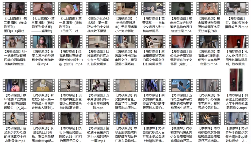 本次带来的是海砂原创部分视频合集,主要为绳缚,K9,露出,呼吸制御等方面的调教,原作者为妖狐吧的海砂原创,主角是女的
